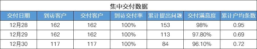 乐居人朝着完美交付目标,805户经过69天的辛苦奋斗完美交付,交付率100%,户均问题<1。