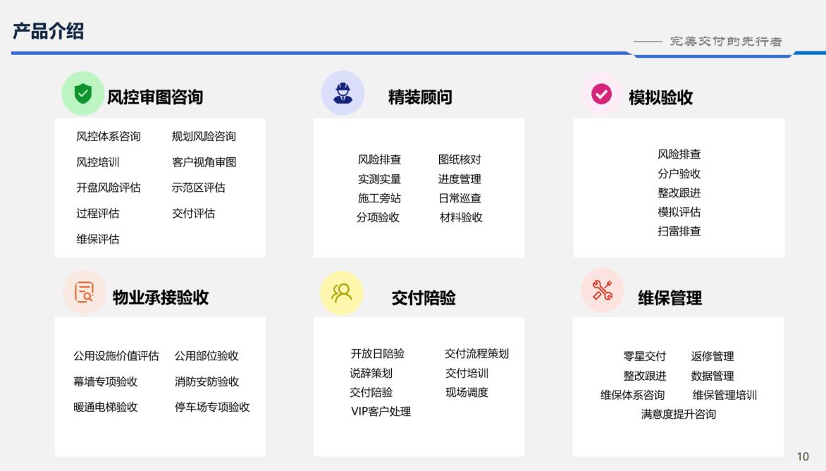 让客户在接房过程中充分了解接房程序,费用来源及收取标准,了解管理公司基本情况等信息,让接完房以后的客户掌握装修必备文件及办理程序,形成管理闭环和一条龙服务模式;配套文件组成:接房流程图、装修管理流程图、备案证明、大修基金管理办法(政府文件)、收费批文、购物中心简介、集团简介、营业执照、装修收费标准等。